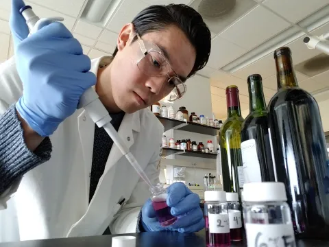 His research in the sciences of grape-growing and winemaking focuses on the chemistry of wine oxidation, or how a wine changes over time with oxygen exposure. Specifically, he studies how a wine’s chemical composition affects how fast or how much it can age. His experiments are conducted in laboratories and vineyards accessible to the department's students. Nguyen has also worked in wineries in Napa, California, and Mendoza, Argentina.